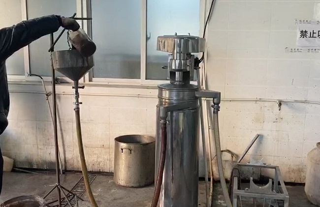 粉末從進(jìn)料口進(jìn)料后即可在離心機(jī)設(shè)備的離心力下,通過固液不同的比重差實(shí)現(xiàn)分離作用,通過整個(gè)離心機(jī)分離實(shí)驗(yàn)過程我們液看到了實(shí)際的分離效果,固液澄清度超出預(yù)期,很適合使用管式離心機(jī)分離。