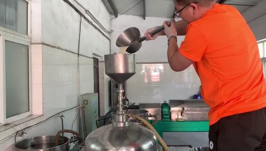 蛋白物料原液從碟片離心機(jī)進(jìn)料口進(jìn)料后,離心機(jī)經(jīng)過高速旋轉(zhuǎn)產(chǎn)生的轉(zhuǎn)速差將蛋白和水分離開,自動(dòng)從離心機(jī)出料口出輕液。