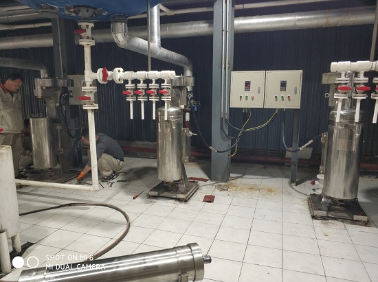 液體物料通過完全徹底預(yù)處理后進(jìn)入管式離心機(jī),清洗后大多數(shù)沉淀物能夠去除,以下降固體含量,攪拌物料以增加流動(dòng)性。能夠有效地提升離心機(jī)的分離作用,消減分離時(shí)間。