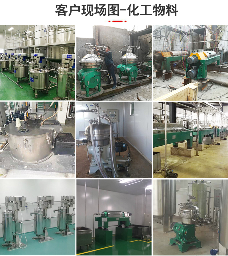 應用設備:根據(jù)化工行業(yè)生產(chǎn)工藝的不同,物料的不同參數(shù),可適用的離心機有管式離心機、碟式離心機、臥螺離心機,平板離心機,其選擇依據(jù)主要有處理量、含固量、分離效果等因素。